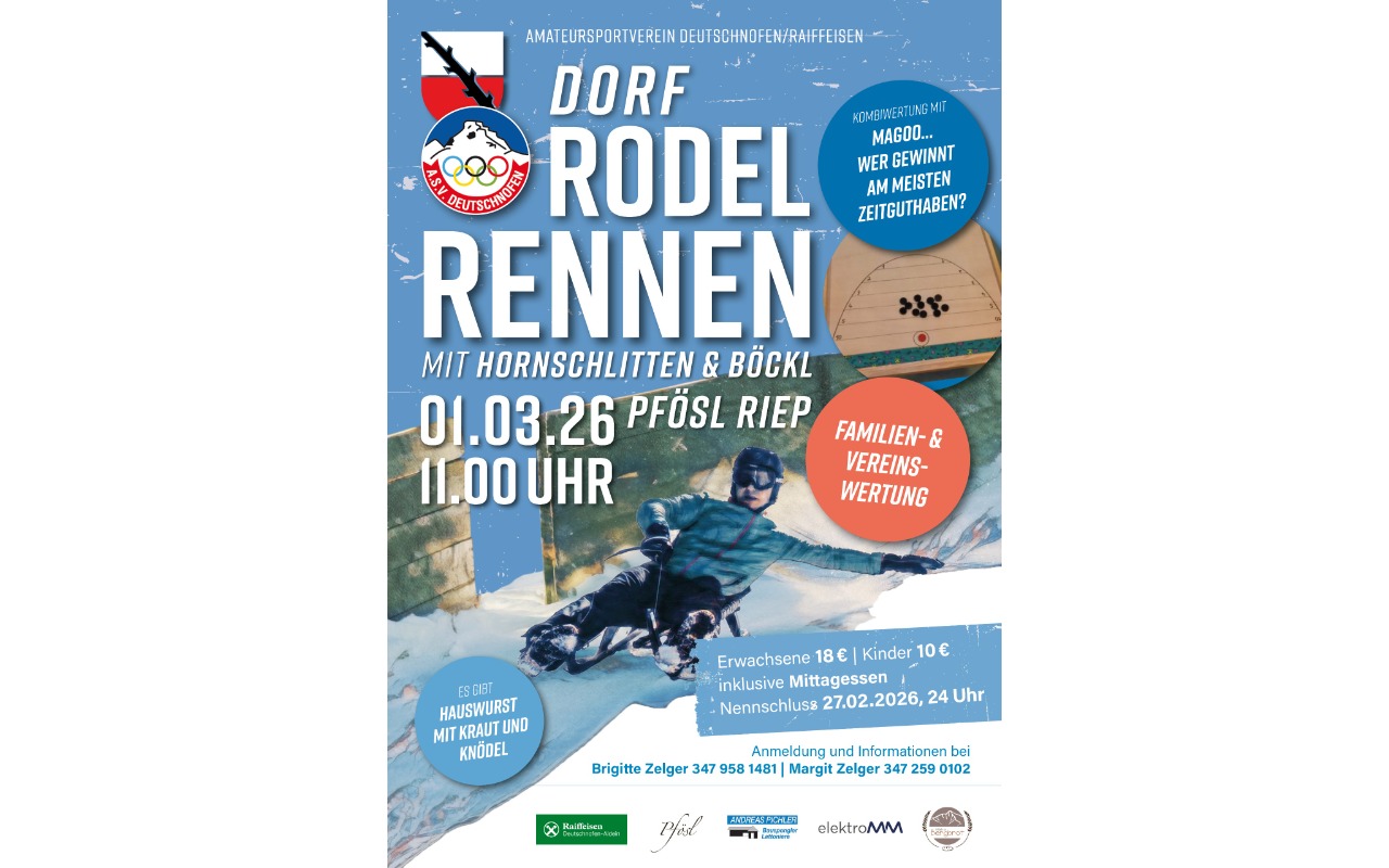 Dorfrodelrennen mit Hornschlitten, Böckl, Vereis- und Familienwertung