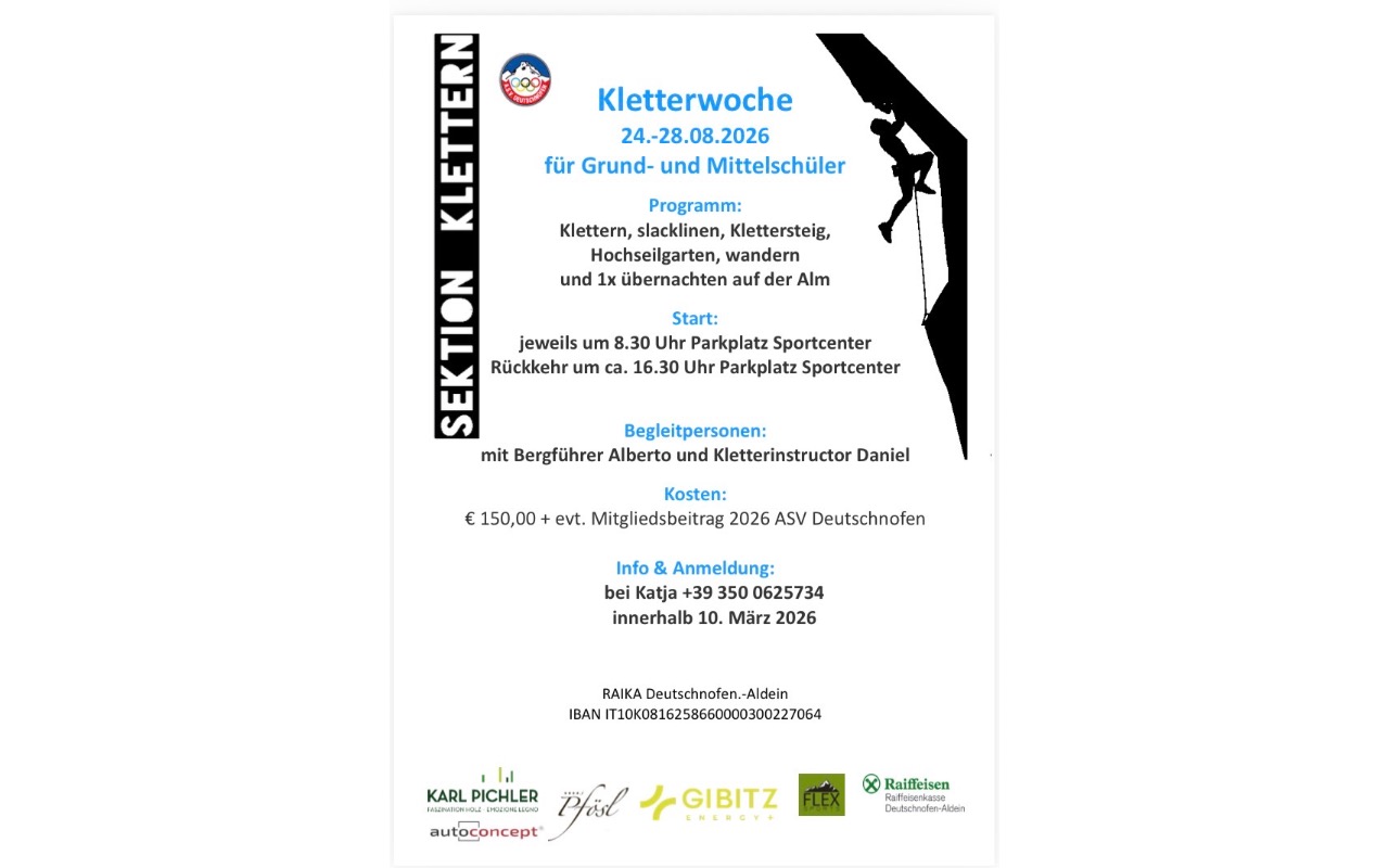 € 150,00 + evt. Mitgliedsbeitrag 2026 ASV Deutschnofen